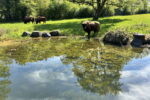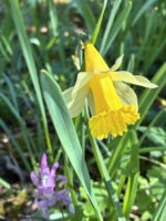 Wunderschöne Osterglocken und die fantastische Idee eines Kanals vom Rhein zur Rhone – Projekt-Name: Transhelvetischer Kanal. Nach dem Erkunden des Canal d’Entreroches, oder was davon noch zu sehen ist, ein kurzer Abstecher zum Schloss von La Sarrraz.