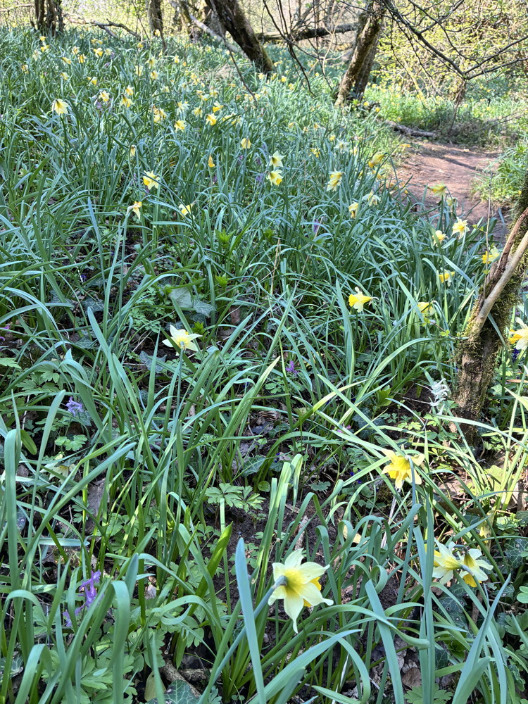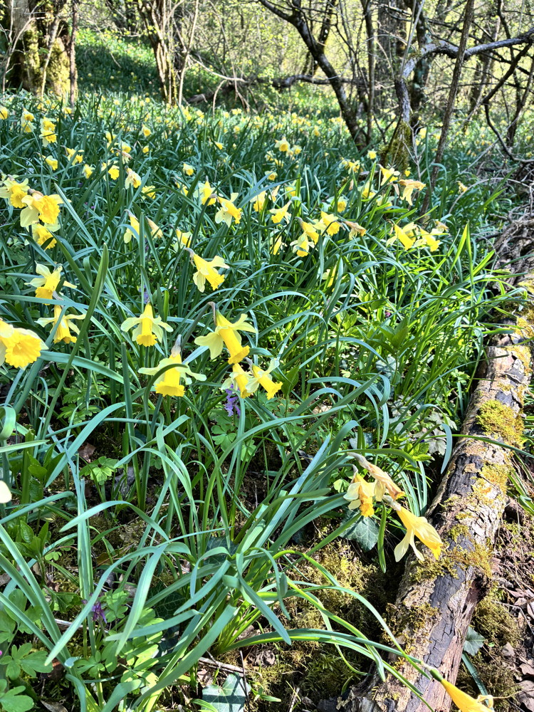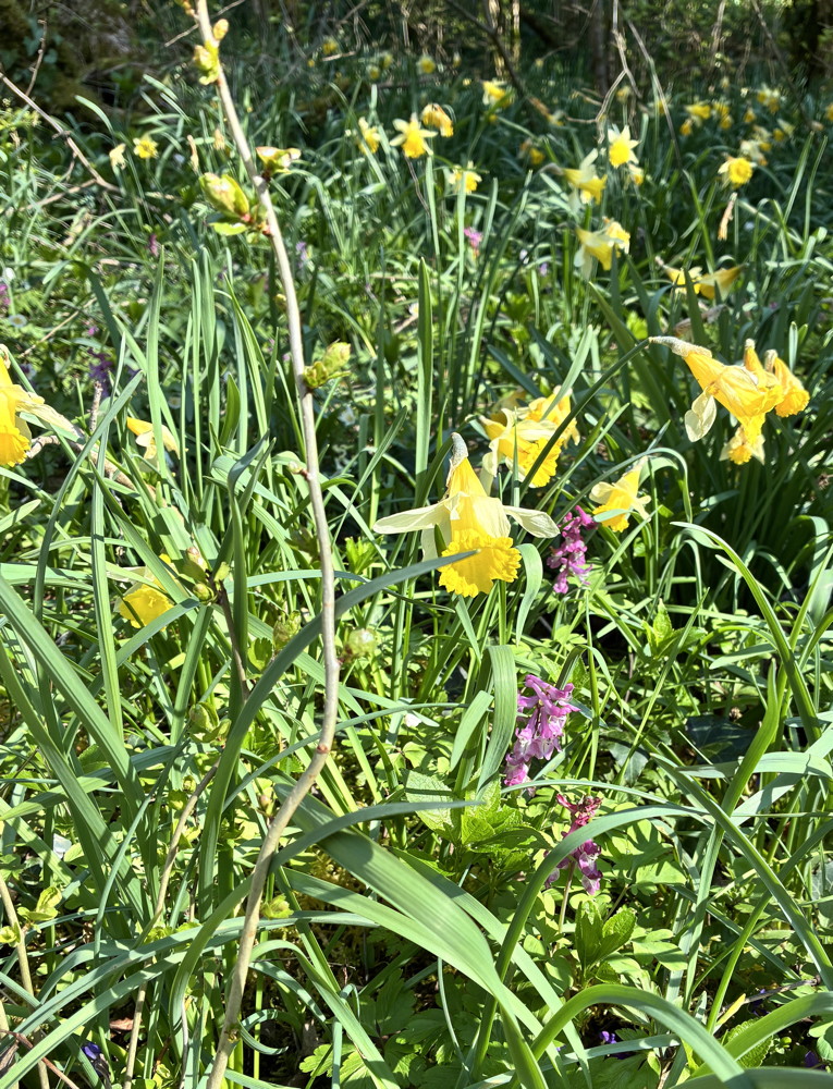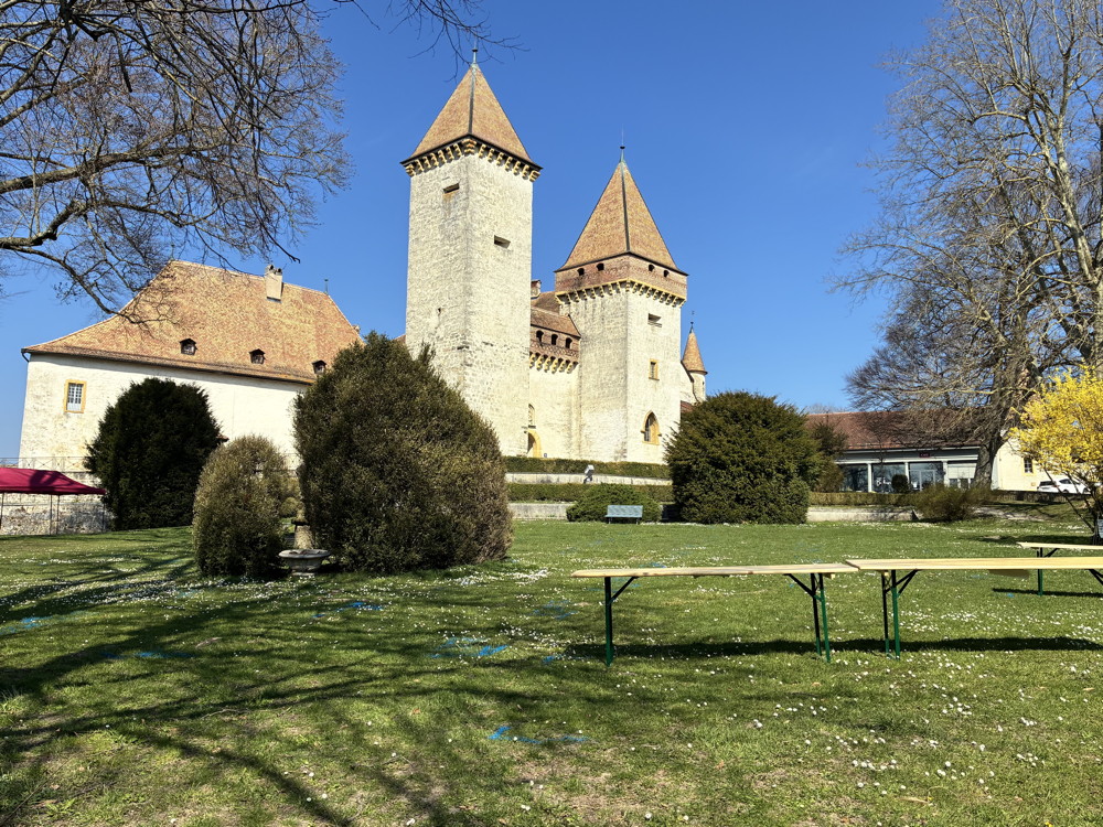 Wunderschöne Osterglocken und die fantastische Idee eines Kanals vom Rhein zur Rhone – Projekt-Name: Transhelvetischer Kanal. Nach dem Erkunden des Canal d’Entreroches, oder was davon noch zu sehen ist, ein kurzer Abstecher zum Schloss von La Sarrraz.