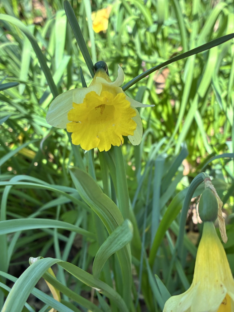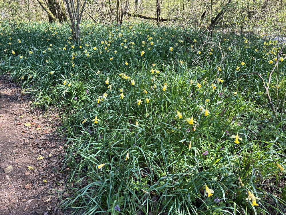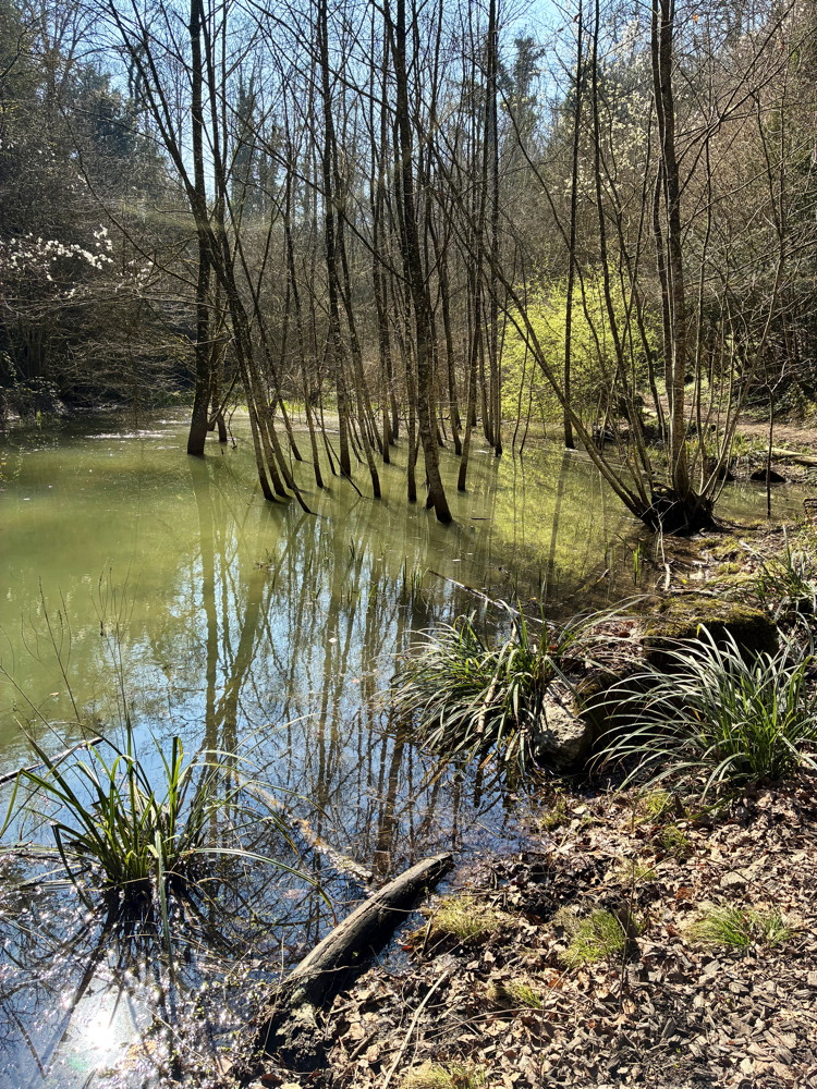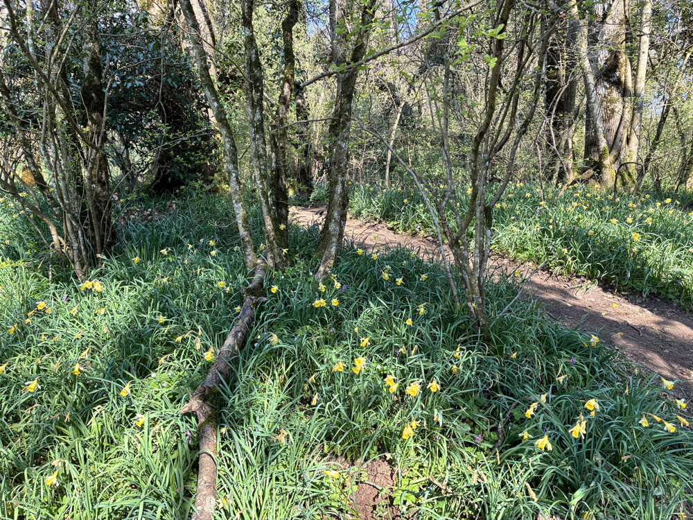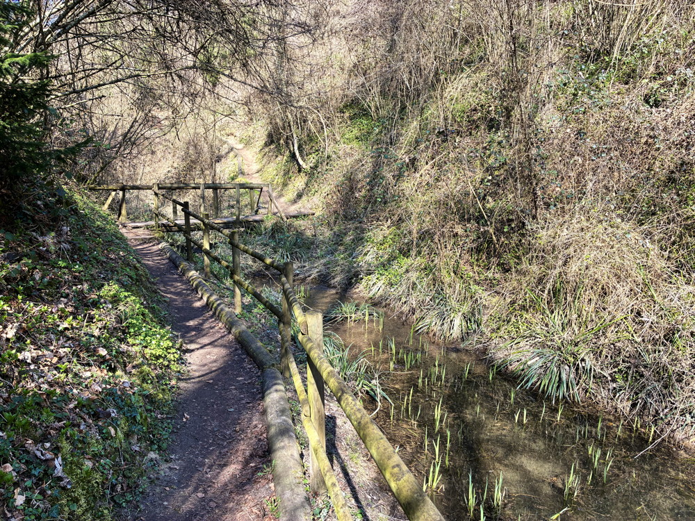 Wunderschöne Osterglocken und die fantastische Idee eines Kanals vom Rhein zur Rhone – Projekt-Name: Transhelvetischer Kanal. Nach dem Erkunden des Canal d’Entreroches, oder was davon noch zu sehen ist, ein kurzer Abstecher zum Schloss von La Sarrraz.