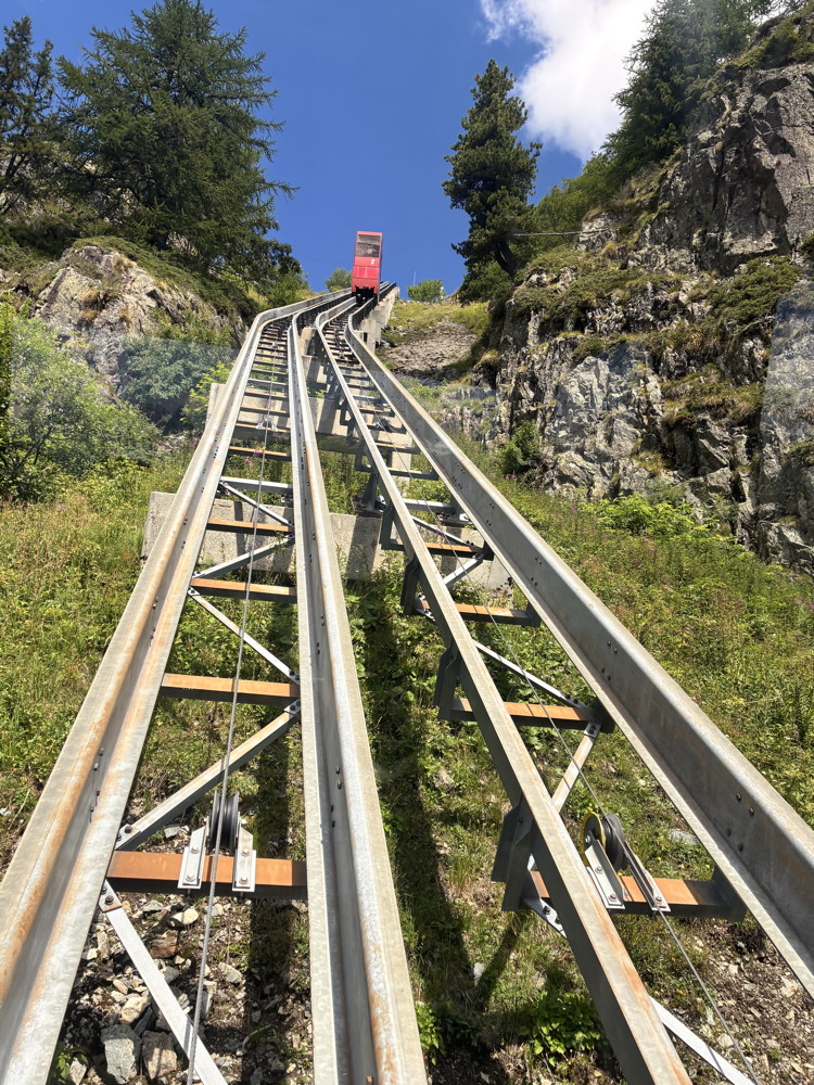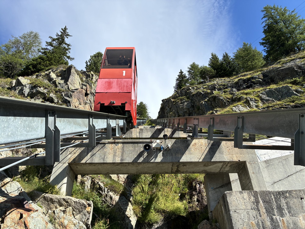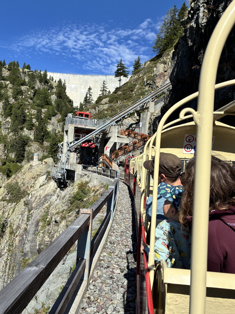 Fahrt von Martigny mit dem Mont-Blanc Express zu den Bahnen von VerticAlp und zum Staudamm von Emosson