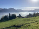 Von Seftigen nach Amsoldingen durch die Hügellandschaft im Westen von Thun, mit einer grandiosen Aussicht auf die Gantrischkette und die Berner Oberländer Bergriesen
